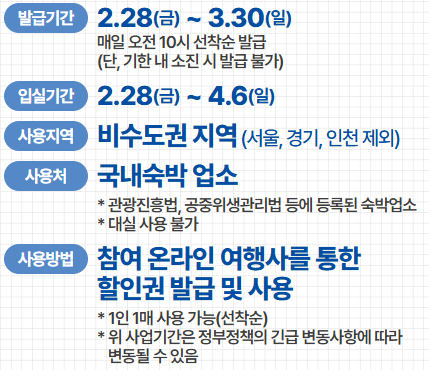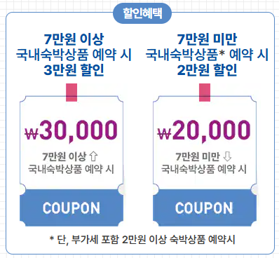 - 20,000원 이상 70,000원 미만 숙박: 20,000원 할인