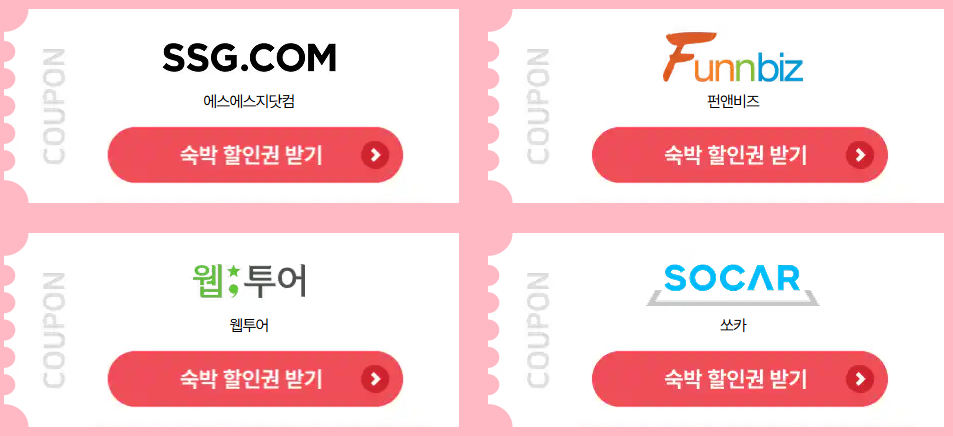 - 쿠폰 사용 페이지로 이동: 각 플랫폼의 '숙박 세일 페스타' 또는 이벤트 페이지로 이동합니다.