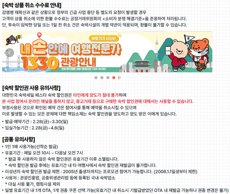 - 숙소 예약 시 쿠폰 적용: 원하는 숙소를 선택한 후 예약 과정에서 발급받은 쿠폰을 적용합니다.