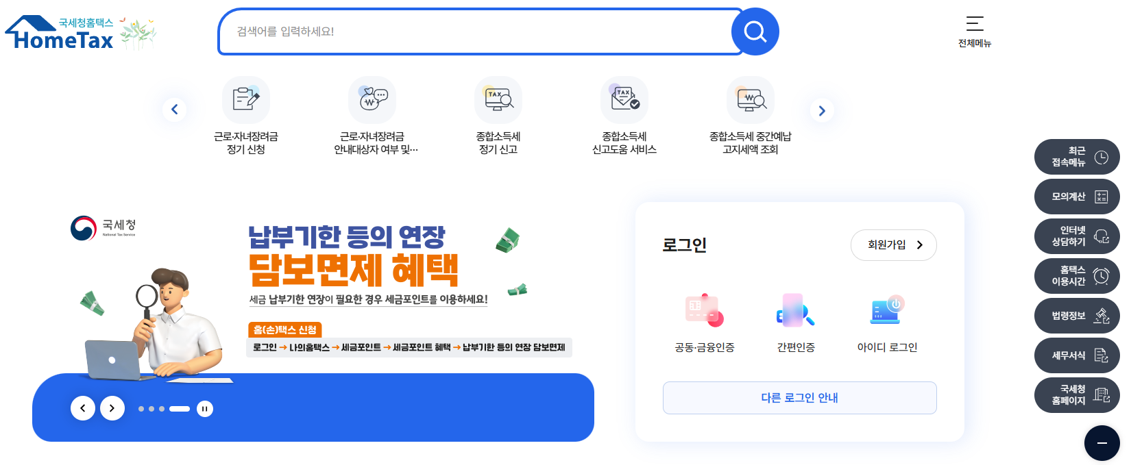- 공동인증서 로그인 후, 신고서 작성 및 제출
